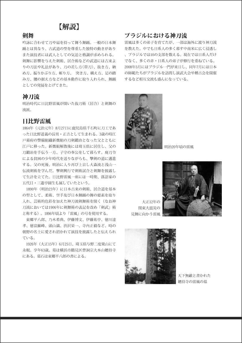 No ano de 1889 assistindo a uma competição de Kendô na universidade de Teikoku, o fundador veio a saber que na China os guerreiros atacavam seus inimigos ao ritmo de poemas que incitavam uma atitude marcial e o espírito de batalha. Motivado por esta informação o patriarca Hibino pesquisou e criou o Shinto Ryu Kembu Jutsu, arte marcial que une a dança às técnicas da espada.